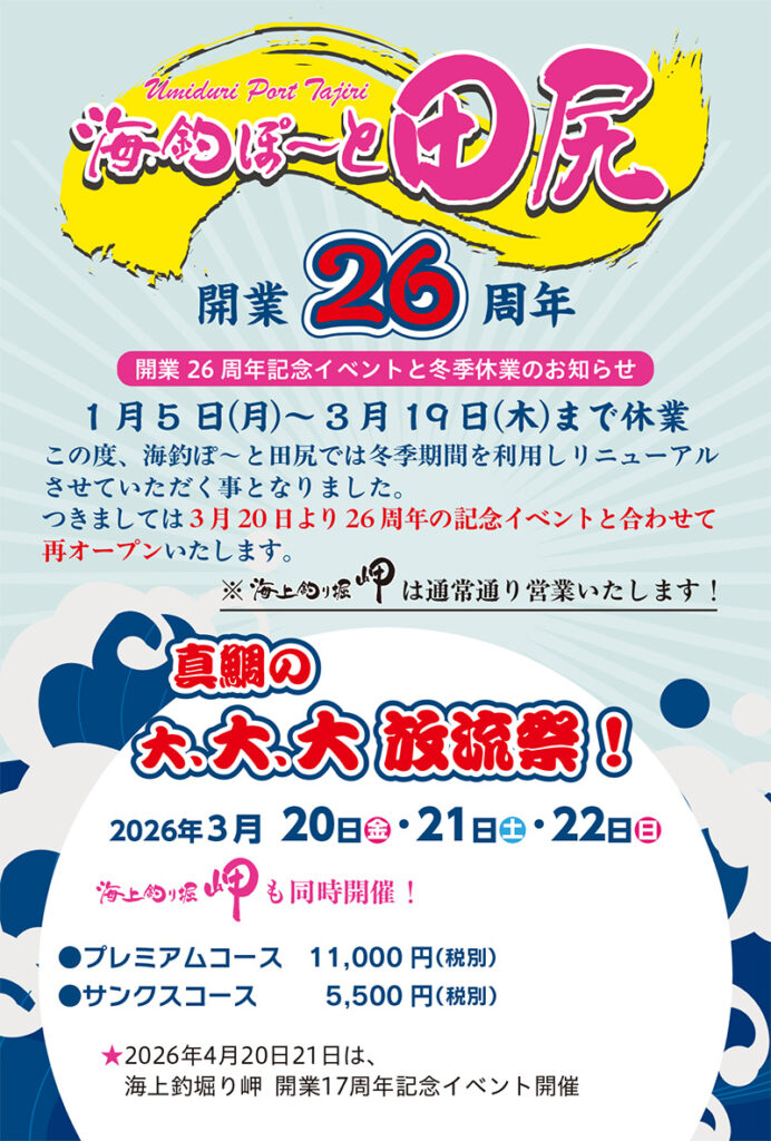 - 姉妹店 海釣ぽ~と田尻 開業26周年記念イベント